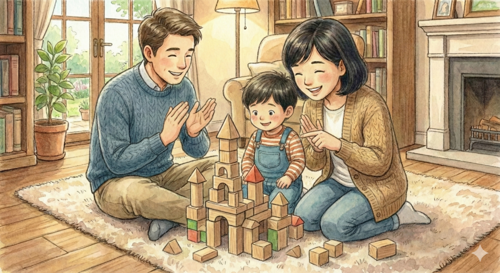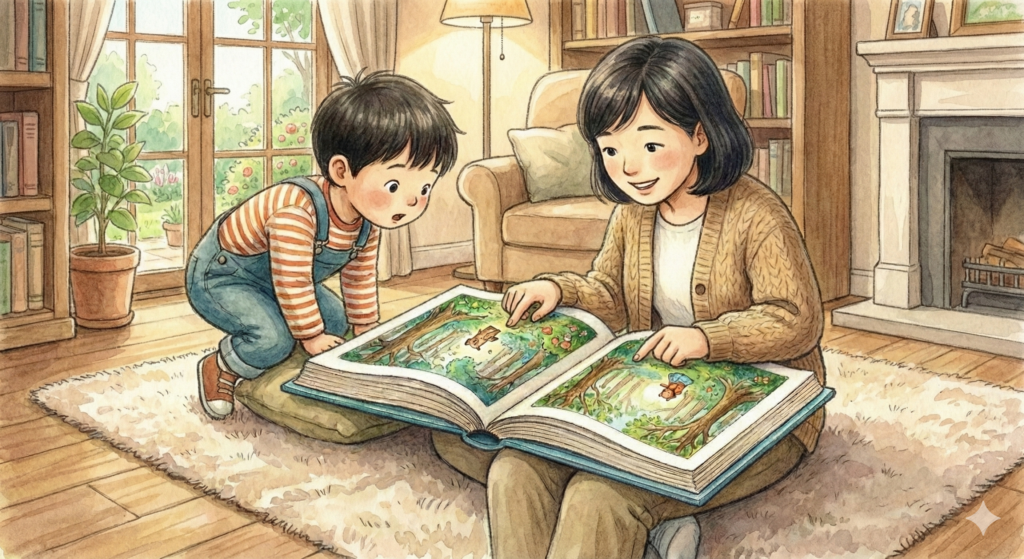 ことばが伸びる子に共通して、大人と同じものを共有しながら楽しむ時間があります。